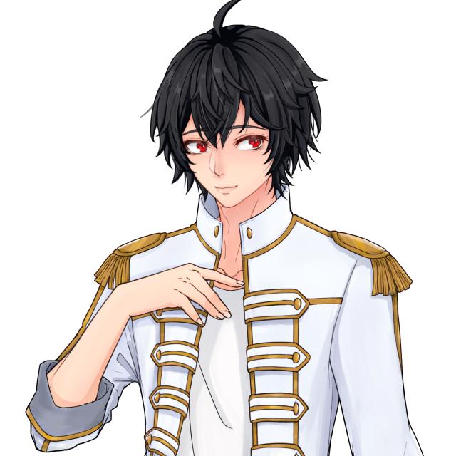 Toshiaki has simple school black hair and apple red eyes. He wears the HLVisual idol costume, which consists of a white shirt and a white T-shirt similar to the idol costume running down his shoulders and wrists, as well as white pants and white shoes.